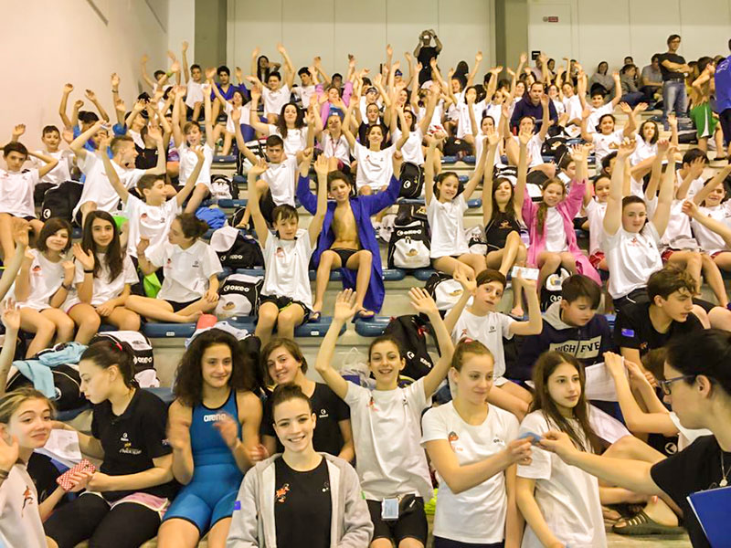 E poi tutti i finalisti. Ben 11 i ragazzi che, oltre ai tre già citati, hanno ottenuto l’accesso alla sfida tra i migliori otto classificati delle batterie di domenica mattina. Sono Giulia Argenio, Silvia Valentini, Nicola Scoprioni (sul podio sia nei 100 rana che nei 100 farfalla), Samuele Meccariello, Giulia Berettini e Giulio Guidi tra gli Esordienti A, Alessandro Diotallevi, Simone Lombardi e Andrea Sepioni nella categoria Ragazzi, Roberta Tobia tra gli Junior e Michele Lucarini tra gli Assoluti.